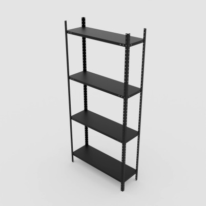 A estante em aço com prateleiras permite ajustes que se encaixam perfeitamente.