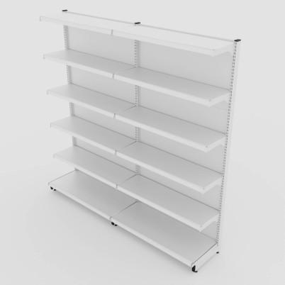 A gôndola de parede é uma estrutura fixa que se apoia nas paredes do estabelecimento, ideal para maximizar o uso do espaço vertical, organizar produtos e facilitar a exposição de mercadorias.
